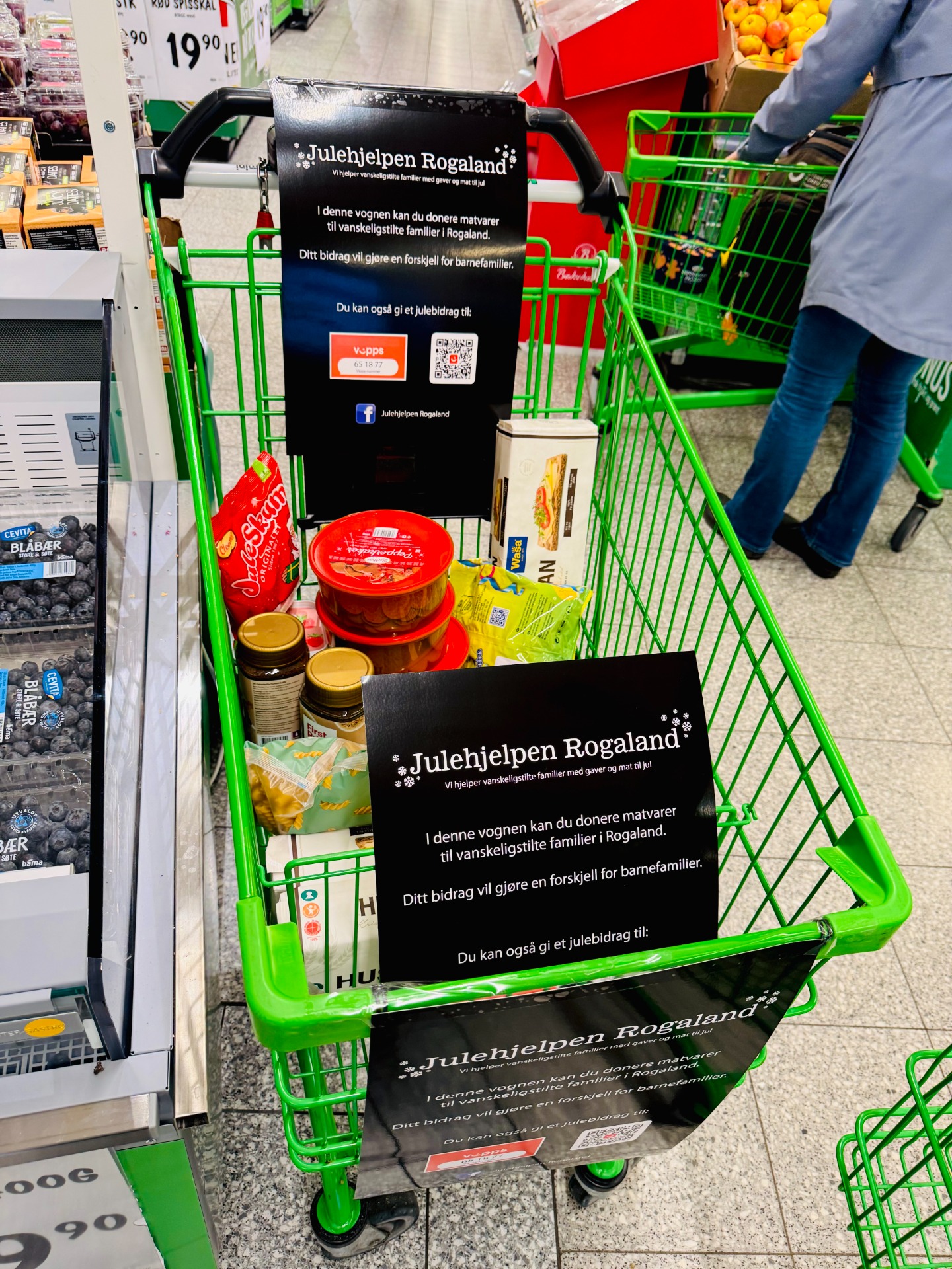 Hvis du er innom en dagligvarebutikk i november eller desember, kan du i flere butikker finne en egen handlevogn hvor du kan donere varer til Julehjelpen Rogaland. Hold gjerne utkikk etter vognen 🛒 og legg i en liten vare eller to – hver eneste gave betyr mye for barnefamilier i Rogaland ❤️