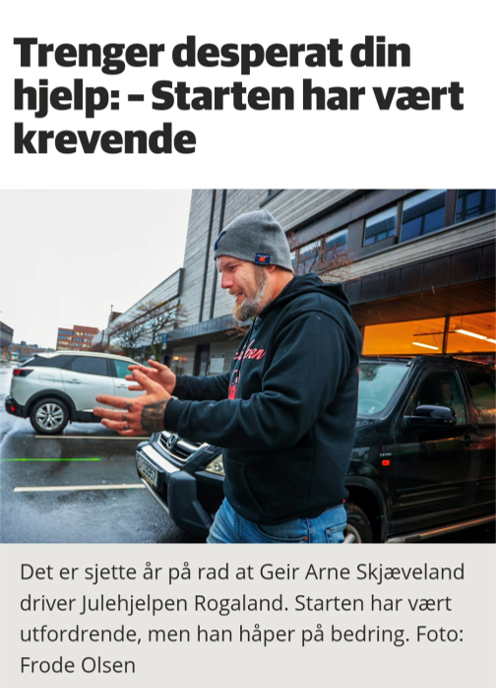 Organisasjonen drives av Geir Arne Skjæveland, som i flere år har viet tiden sin til å hjelpe familier i en krevende situasjon. Han startet Julehjelpen fordi han så hvor mange som strever i førjulstiden – og fordi han tror på kraften i fellesskap og godhet.